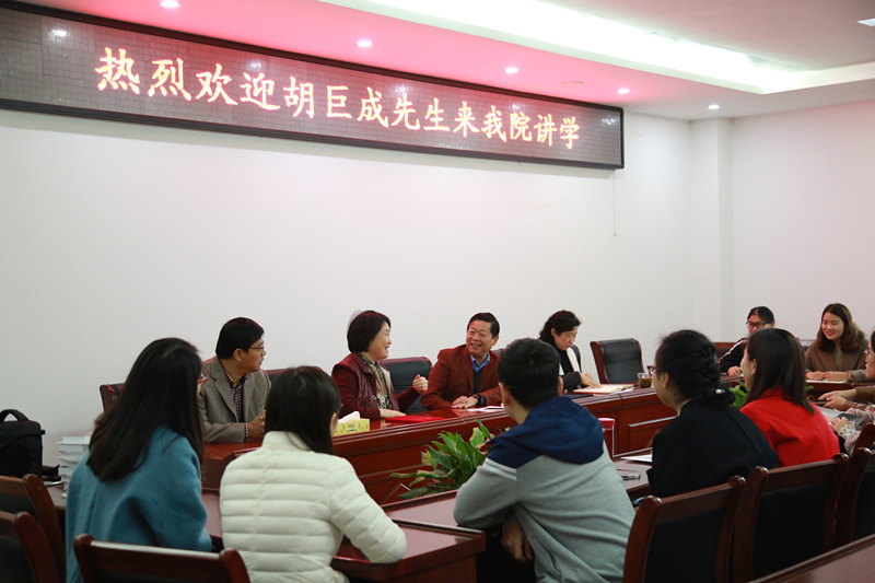 10月17日上午,在社科楼311会议室,河南日报报业集团驻信阳记者站站长胡巨成受聘威尼斯官网硕士研究生导师,并作题为“人物访谈与新闻采写”的学术报告。院长焦素娥,副院长刘想如、刘新建,教师代表及2017级广播电视专业研究生参加了报告会。