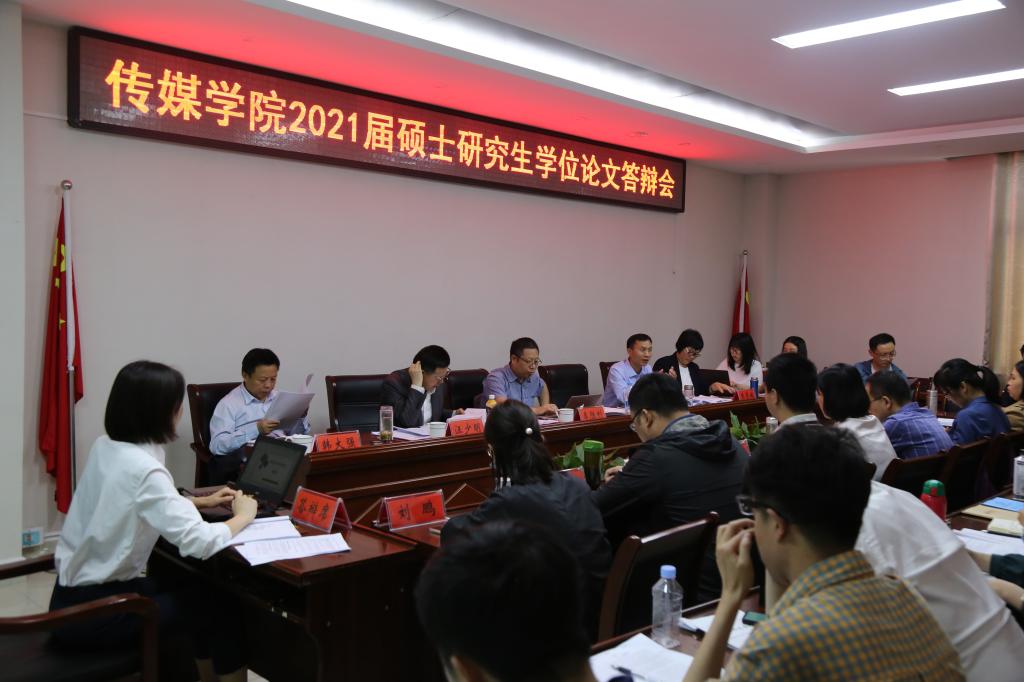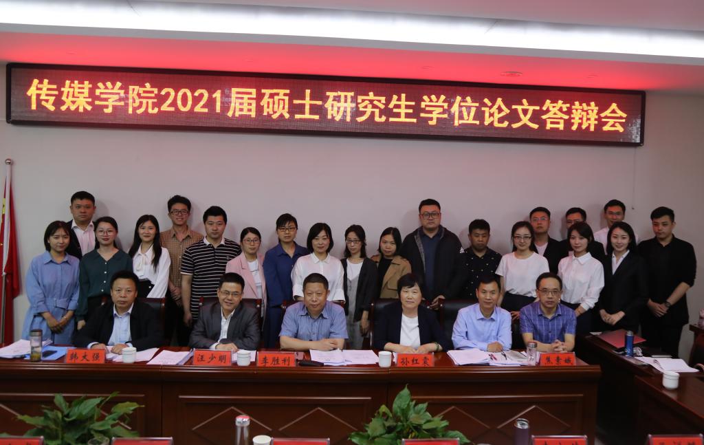 5月25日上午,38238a威尼斯欢迎你在社科楼311会议室举行2021届硕士研究生学位论文答辩会。中国传媒大学博士生导师李胜利教授受邀担任答辩委员会主席,周口师范学院孙红震教授、黄冈师范学院汪少明教授、38238a威尼斯欢迎你院长焦素娥教授以及威尼斯官网部分硕士生导师共同担任答辩委员会委员。13名2021届硕士研究生分两组进行毕业答辩,2019级硕士研究生与会旁听。